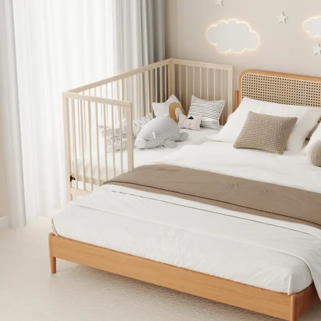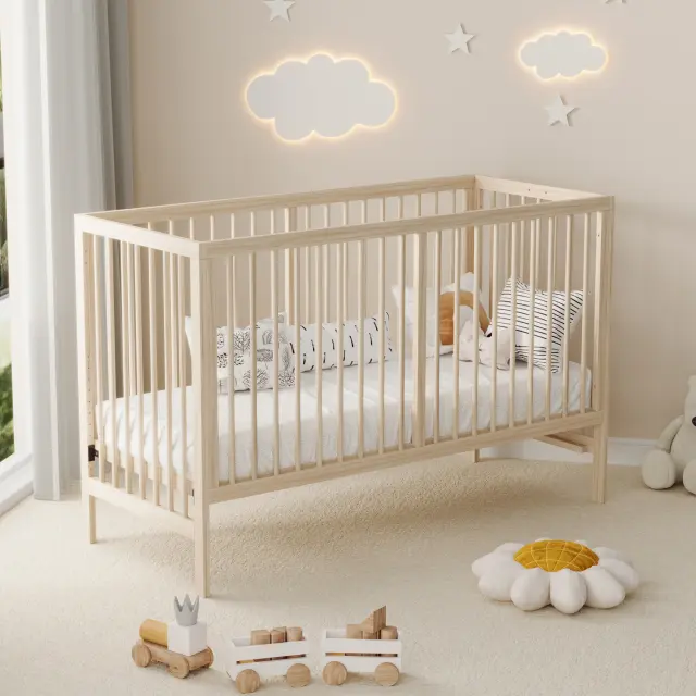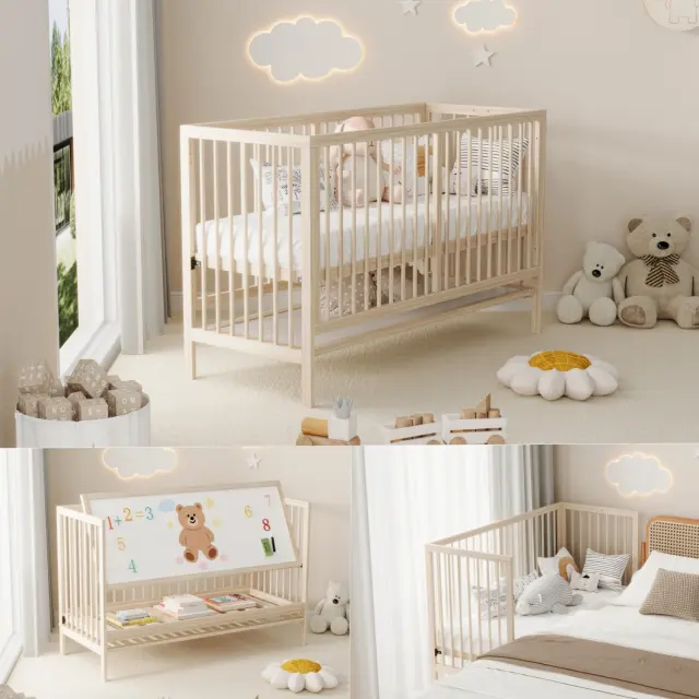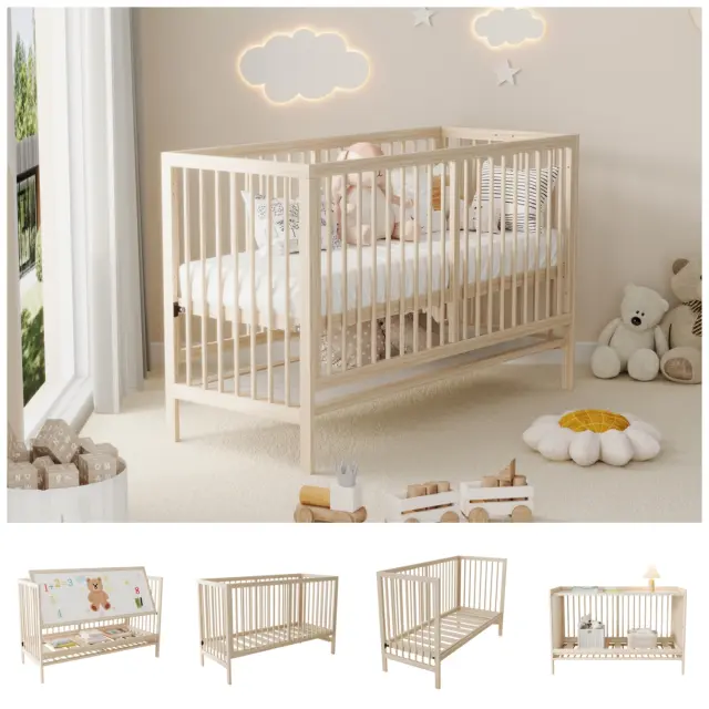 Večnamenska lesena otroška postelja, nastavljiva po višini, naravna smreka, 140x60x90cm