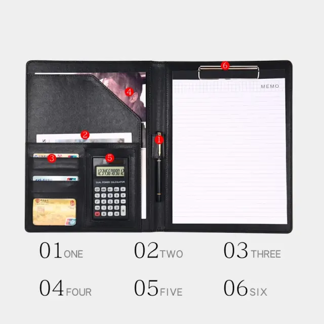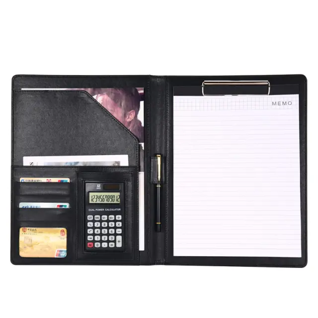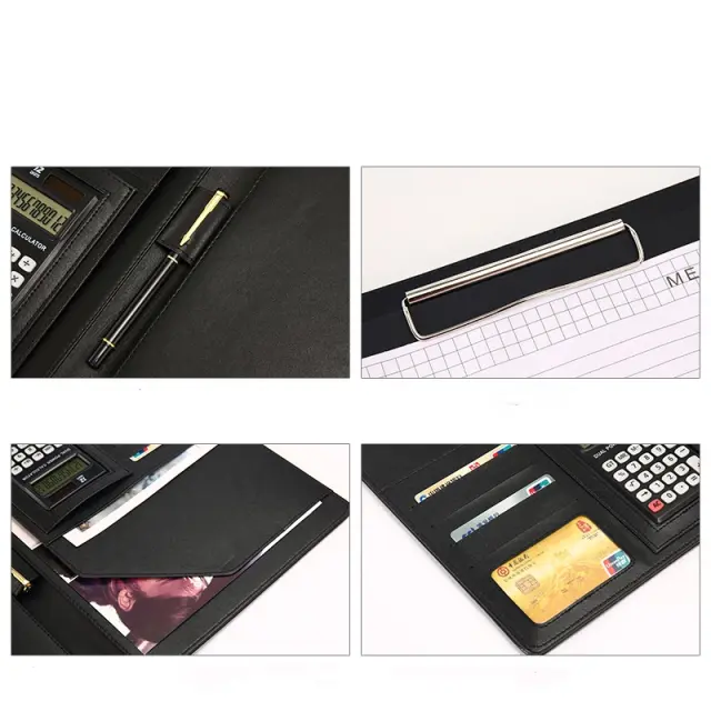 Priročne reže za kartice: z namenskimi režami za kartice vam ta mapa omogoča varno shranjevanje in organiziranje vaših vizitk, osebnih izkaznic ali kreditnih kartic, tako da so vedno na dosegu roke.