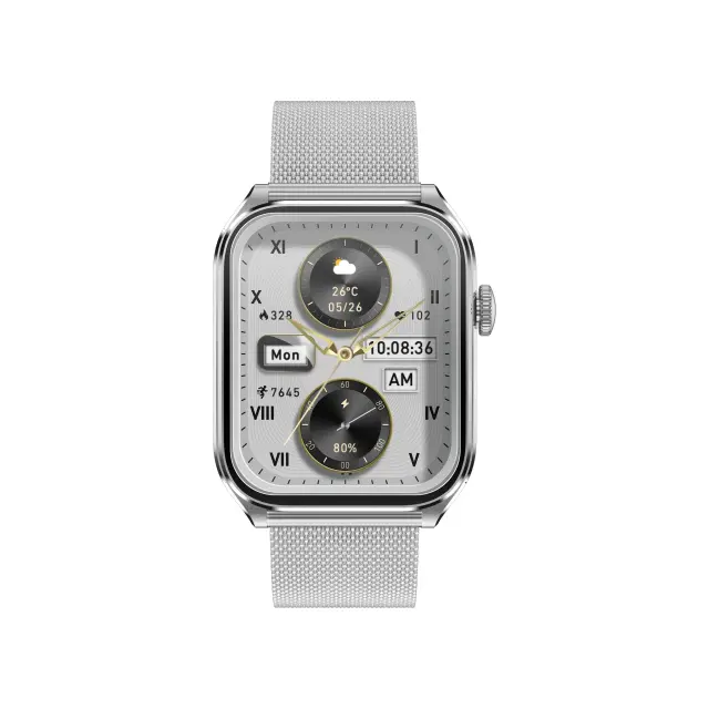 Večnamenska pametna ura z zaslonom AMOLED, Bluetooth klici in spremljanjem zdravja Silver