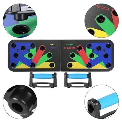 Izboljšajte učinkovitost vadbe z vzdrževanjem pravilne postavitve rok med odrivi. Z barvno označenim sistemom lahko vadite samozavestno, saj veste, da vaje izvajate pravilno. Posebni gumijasti ročaji dodatno zagotavljajo pravilno postavitev zapestja in zagotavljajo večje udobje za vaše roke.
