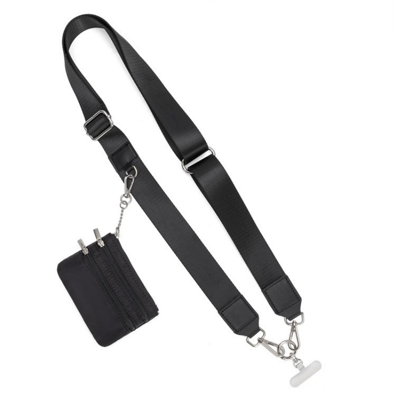 Večnamenska snemljiva najlonska vrvica za telefon s širokim naramnico in torbico za kovance Black
