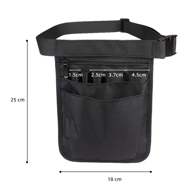 Dovolj prostora za shranjevanje: ta torbica za okoli pasu ima več predelkov in žepov in nudi veliko prostora za shranjevanje različnih orodij in pripomočkov. Dobro organizirana zasnova omogoča enostaven dostop do vaših stvari, zaradi česar ste učinkoviti pri delu.