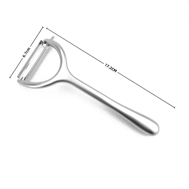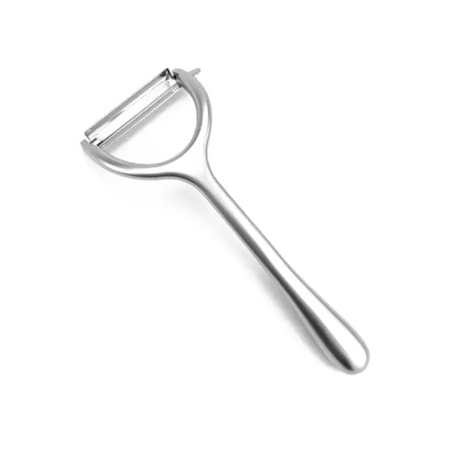 Enostavno lupljenje: Doživite enostavno lupljenje sadja in zelenjave z našim večnamenskim lupilcem iz nerjavečega jekla. Njegovo ostro, ravno rezilo brez težav drsi skozi kožo krompirja, kumar, jabolk, korenja in še več, ne da bi poškodovalo meso. Idealen za hitro in učinkovito pripravo sestavin za vsak obrok. Ergonomska oblika zagotavlja udoben oprijem, zaradi česar je lupljenje enostavno tudi pri velikih količinah. Poslovite se od dolgočasnega lupljenja in pozdravite učinkovitejše kuhanje.