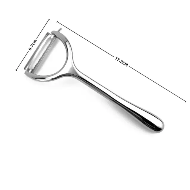Enostavno lupljenje: Prosimo, upoštevajte: to niso originalni deli. Večnamenski lupilec z nazobčanim rezilom iz nerjavečega jekla omogoča enostavno lupljenje različnega sadja in zelenjave. Ostro rezilo gladko drsi po koži ter jo hitro in učinkovito odstrani, ne da bi poškodovalo meso pod njo. Idealen je za lupljenje krompirja, kumar, jabolk, korenja in drugih pridelkov. Nazobčan rob zagotavlja čisto in dosledno lupino, zmanjšuje količino odpadkov in povečuje vaš izkoristek. To kuhinjsko orodje je zasnovano za hitrost in priročnost, kar olajša pripravo hrane.