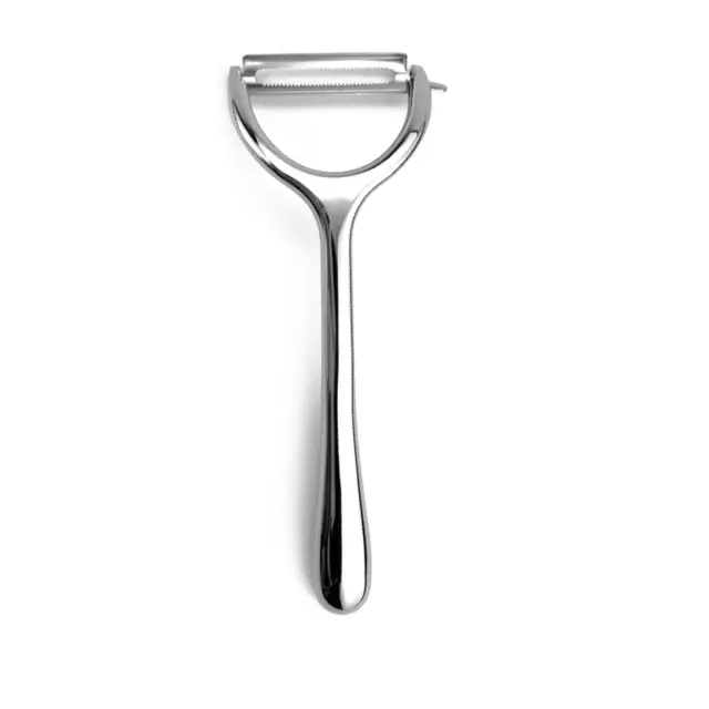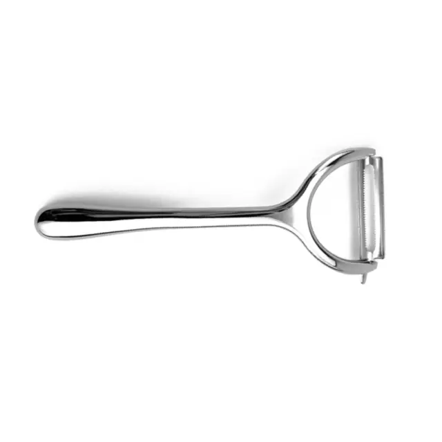Vsestransko kuhinjsko orodje: Prosimo, upoštevajte: to niso originalni deli. Ta večnamenski lupilec ni omejen samo na lupljenje. Njegova zasnova omogoča, da ga uporabljate kot orodje za okras, ustvarjanje tankih rezin zelenjave za solate ali okrasne namene. Nazobčano rezilo odlično deluje za ustvarjanje julienne trakov za mešano ocvrto hrano ali druge jedi. Zaradi svoje vsestranskosti je dragocen dodatek vsaki kuhinji, saj poenostavlja pripravo hrane in širi vaše kulinarične možnosti. Ne glede na to, ali ste profesionalni kuhar ali domači kuhar, bo ta lupilec postal nepogrešljivo orodje za različne naloge. Od lupljenja sadja in zelenjave do ustvarjanja okraskov in julienne trakov, ta lupilec naredi vse.
