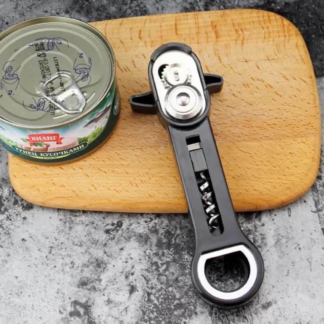 Vsestransko kuhinjsko orodje: Poleg odpiranja konzerv to orodje služi tudi kot odpirač za steklenice, zaradi česar je praktičen dodatek vašemu kuhinjskemu predalu. Njegova kompaktna zasnova zlahka obvladuje tako standardne pokrovčke za steklenice kot tudi pokrovčke za konzerve, s čimer odpravlja potrebo po več orodjih.