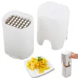 Dovolj je, da vstavite krompir in močno pritisnete in rezila ga bodo zlahka razdelila na koščke. Rezalnik je idealen tudi za rezanje druge zelenjave in sadja, kot so bučke, čebula, paradižnik, kumare, paprika, jabolko, hruška ali melona.