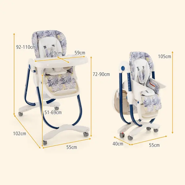 Večnamenski stolček za hranjenje z nastavljivo višino