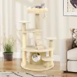 Zadovoljevanje naravnih instinktov: V večnadstropno mačje drevo so v celoti oviti praskalniki, ki ne le zadovoljijo instinktivno potrebo po praskanju vaše mačke, temveč tudi zaščitijo vaše pohištvo pred poškodbami. Poleg tega je viseča igrača z zvončkom idealna za zaposlitev in aktivnost vaše mačke.