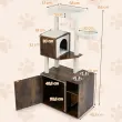 Ta inovativni kos lesenega pohištva združuje eleganten mačji stolp s skritim prostorom za stranišče in optimizira talni prostor. Uporablja se lahko kot skrito korito za smeti, udobna mačja hišica ali praktična omarica za shranjevanje in izpolnjuje različne potrebe.