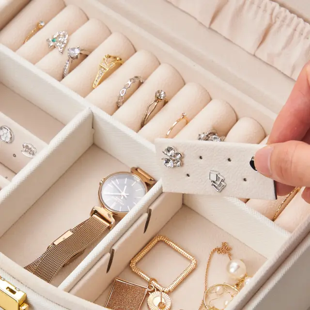 Večplastna škatla za nakit s ključavnico White