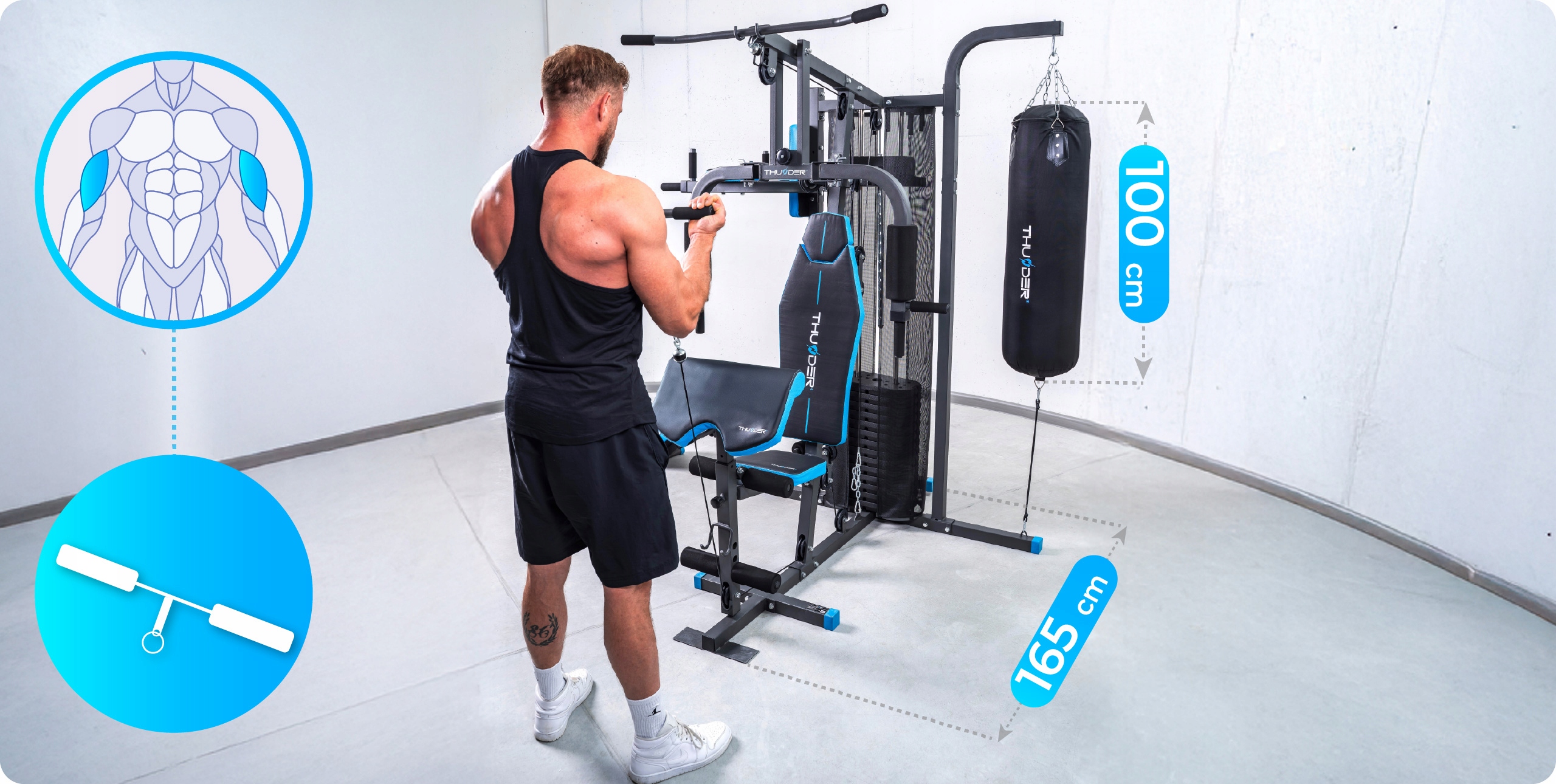 Trenažni atlas PUNCH znamke THUNDER® je odlična izbira za tiste, ki cenijo funkcionalnost, stabilnost in vsestranskost vadbe!