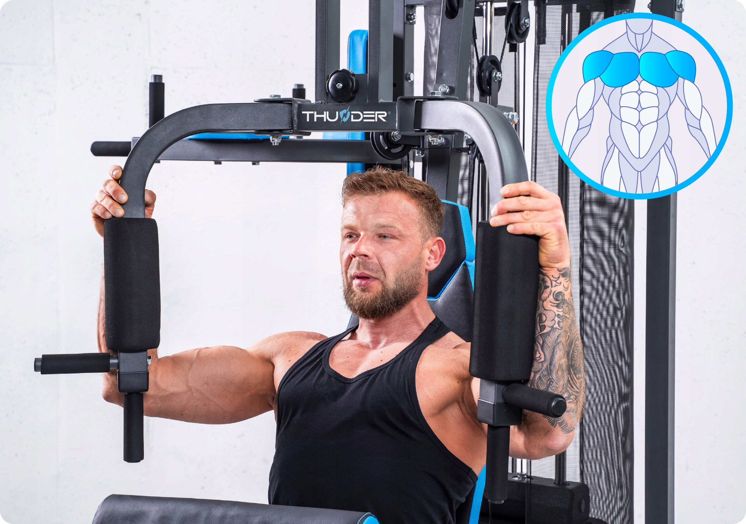 Trenažer prsnih mišic (t. i. »metuljček«) – za vadbo prsnih mišic in sprednjih delov ramen