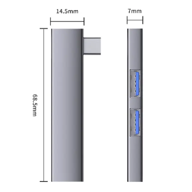 Večvmesniški razširitveni adapter TYPE-C na dvojni USB2.0 + USB3.0 Grey