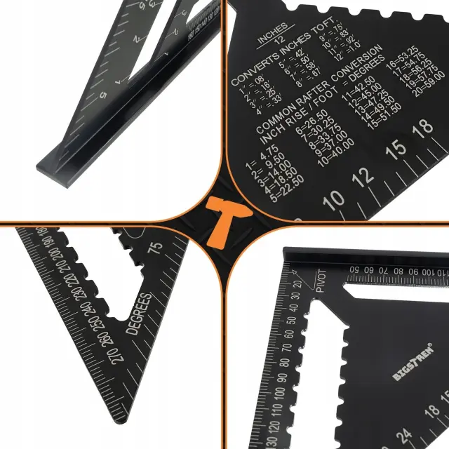 Velik alu. mizarski kotnik 300x300x450mm črn in svinčniki