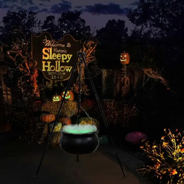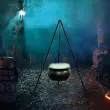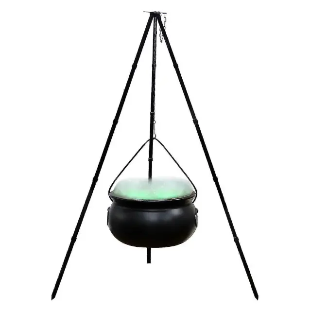 Velik čarovniški kotel na trinožniku z LED lučko, dvorišče, domača veranda, dekoracija za noč čarovnic, na prostem, novo