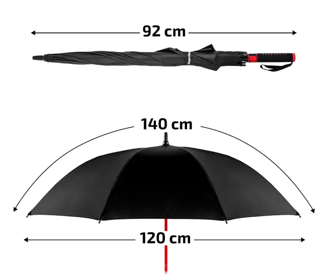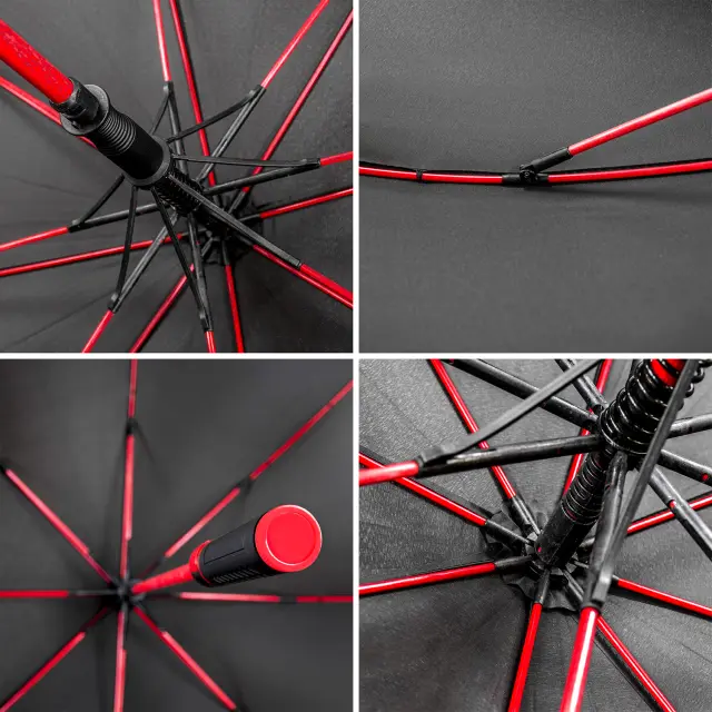 Velik moški dežnik, močan, odporen na dež, nevihto, črn, rdeč