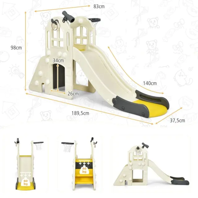 Velik otroški tobogan 6 v 1 189,5 x 83 x 98 cm