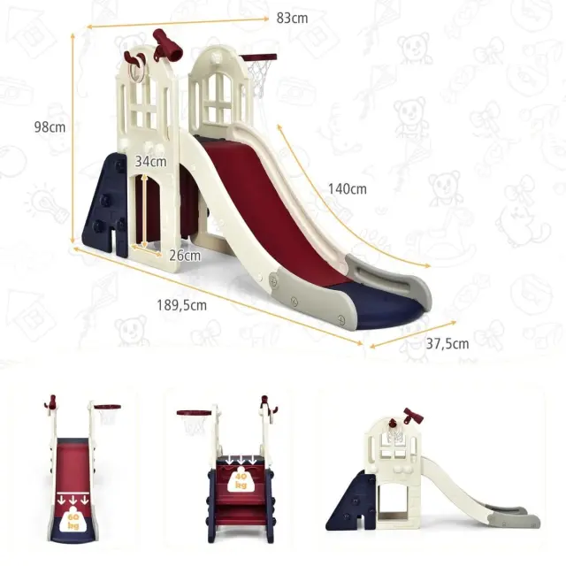 Velik otroški tobogan 6 v 1 189,5 x 83 x 98 cm