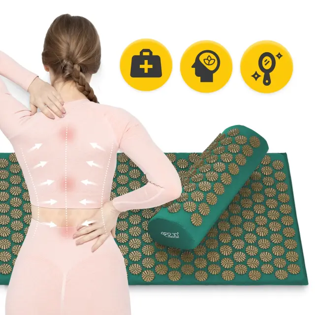 Velika Akupresurna Podloga Z Blazino Xl - Zeleno-Zlata