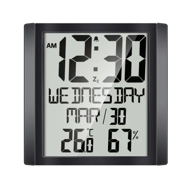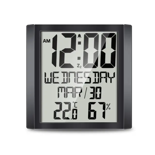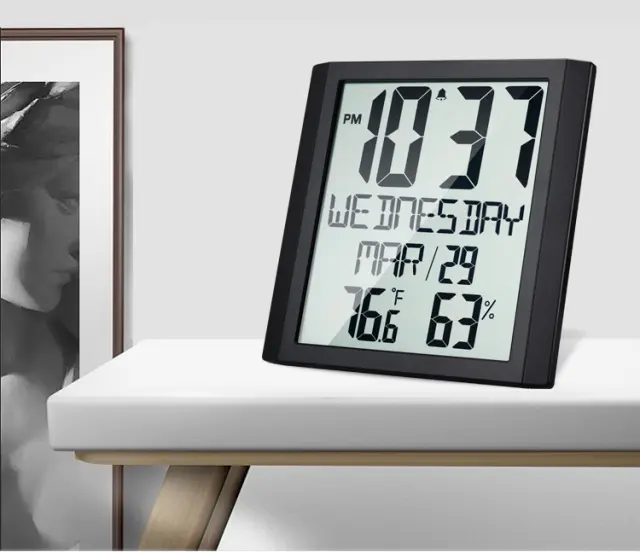 Enostavna berljivost: Ta digitalna ura z velikim 8,86-palčnim LCD-zaslonom zagotavlja jasno vidljivost časa tudi z daljše razdalje, zato je kot nalašč za velike sobe ali pisarne.