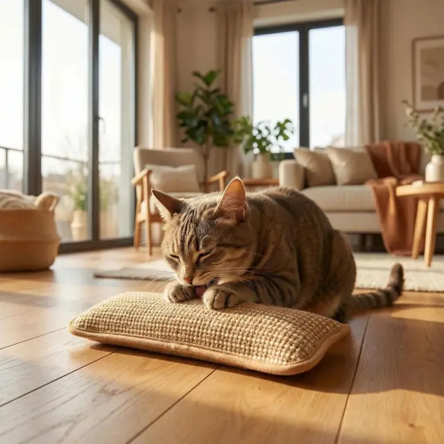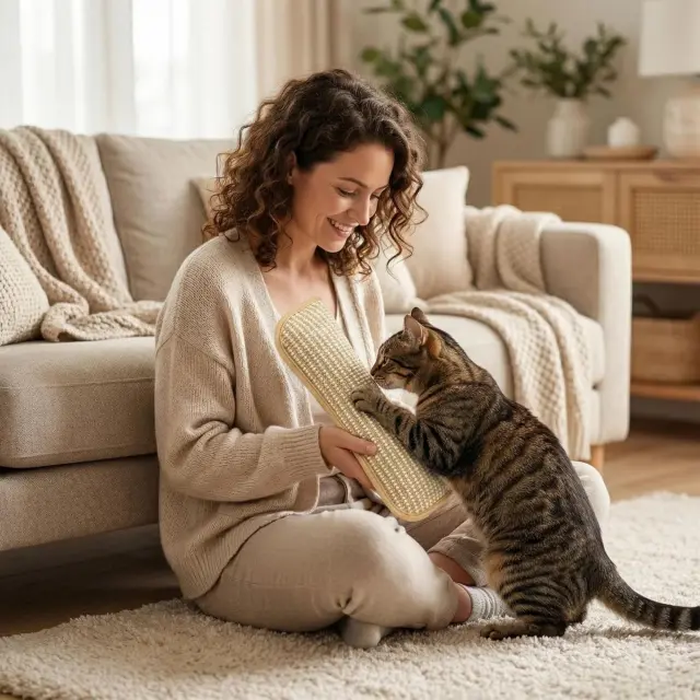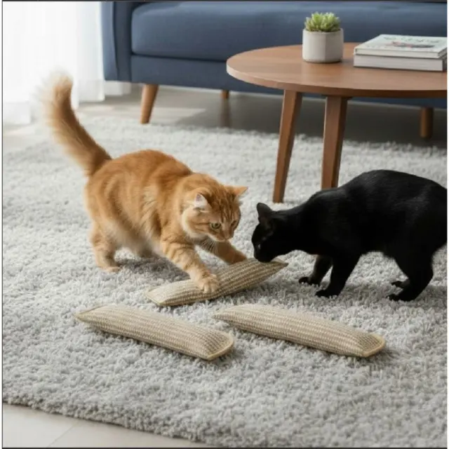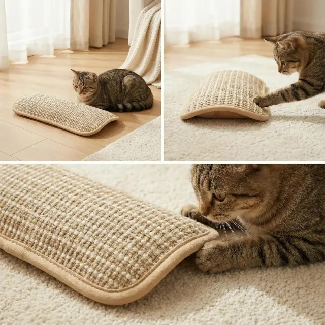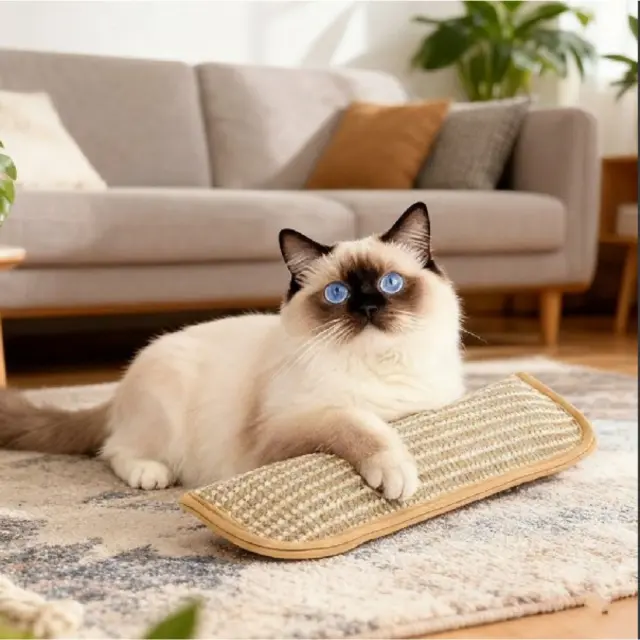 Naravna tkanina iz sizala mačkam nudi ustrezno površino za praskanje in pomaga preusmeriti kremplje stran od kavčev.