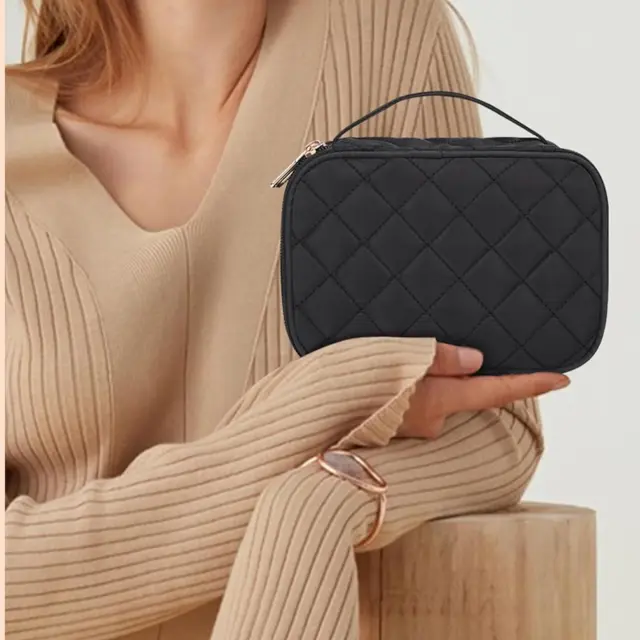 Zasnovana za ženske, ki cenijo lepoto in udobje, ta napihnjena kozmetična torbica zlahka sprejme vse vaše vsakodnevne izdelke za ličenje in nego kože, hkrati pa ohranja svojo obliko in strukturo.