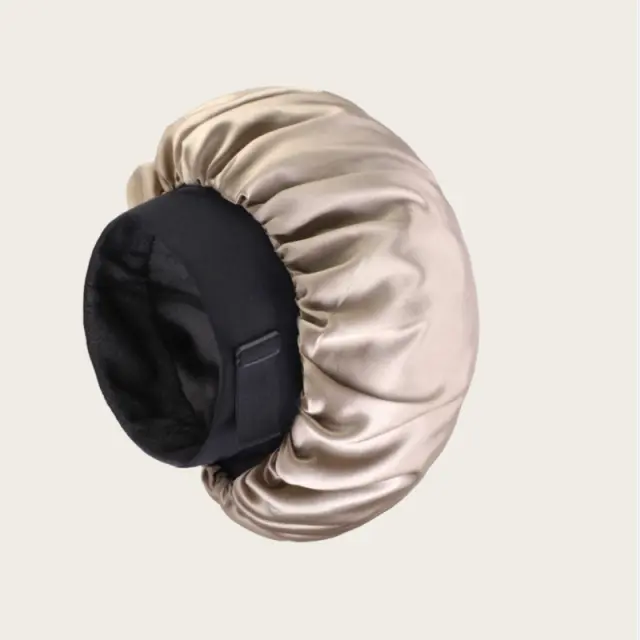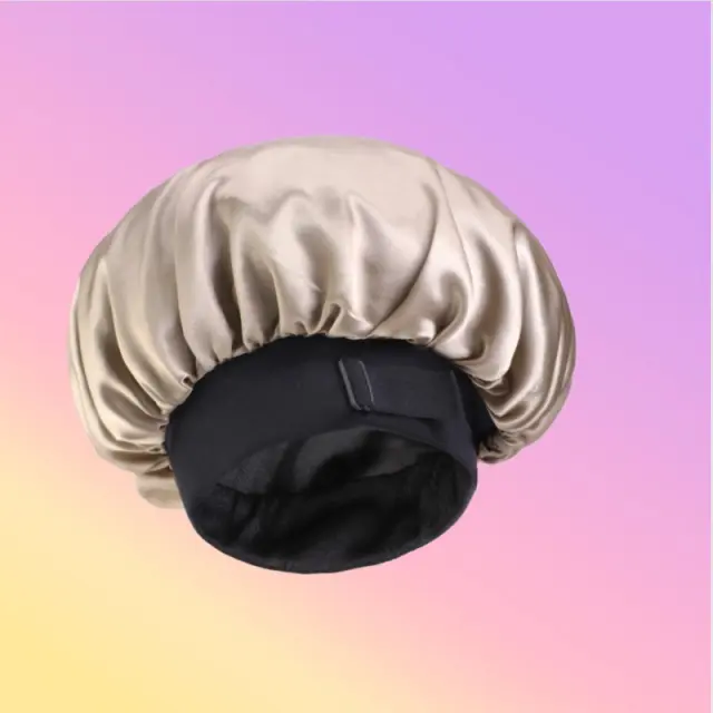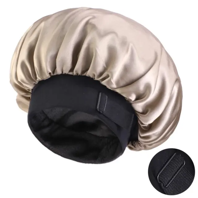 Velika satenasta spalna kapa z nevidno nastavljivo zaponko in širokim robom Khaki