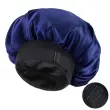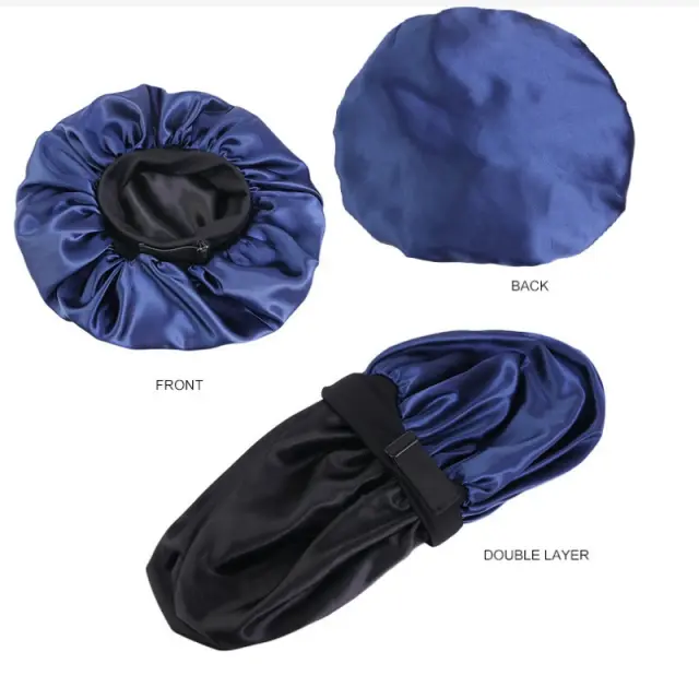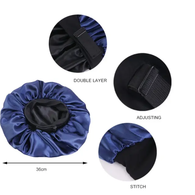 Velika satenasta spalna kapa z nevidno nastavljivo zaponko in širokim robom NavyBlue