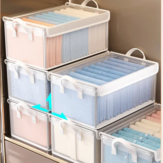 Močan jekleni okvir: Ta škatla za shranjevanje oblačil je izdelana z ojačanim jeklenim okvirjem, ki zagotavlja izjemno trdnost in stabilnost. Prenese velike obremenitve, ne da bi se upognila ali zrušila, kar zagotavlja dolgo življenjsko dobo.