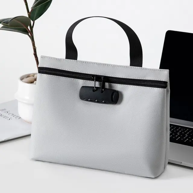 Izboljšana varnost dokumentov: Ta torba za dokumente z geslom zagotavlja vrhunsko zaščito za vaše pomembne dokumente, dragocenosti in osebne predmete. Izboljšan mehanizem zaklepanja z zadrgo zagotavlja, da lahko samo vi dostopate do vsebine, kar vam nudi mirnost, ne glede na to, ali ste doma, v pisarni ali na potovanju. Idealna je za zaščito občutljivih informacij, pogodb, finančnih zapisov, potnih listov, potrdil in druge bistvene dokumentacije pred nepooblaščenim dostopom ali krajo. Varna zasnova jo naredi zanesljivo izbiro za vse, ki morajo zaščititi svoje zaupne materiale. Popolna je za študente, ki shranjujejo izpitne pole, ali za strokovnjake, ki obravnavajo bančne dokumente in lastninske listine.