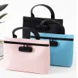 Potovanju prijazna zasnova: Kompaktna in lahka zasnova te torbe za dokumente z zaklepanjem jo naredi odličnega sopotnika. Zlahka se prilega kovčku, nahrbtniku ali aktovki, kar vam omogoča, da svoje pomembne dokumente in dragocenosti ohranite varne in zaščitene na poti. Trden ročaj zagotavlja udoben oprijem za enostavno prenašanje, geslo pa doda dodatno raven varnosti za zaščito pred krajo ali posegi. Ne glede na to, ali potujete poslovno ali zasebno, ta torba za dokumente zagotavlja, da vaše bistvene stvari ostanejo varne in organizirane skozi celotno potovanje. Popolna je za shranjevanje potnih listov, potovalnih dokumentov in drugih dragocenosti med navigacijo po letališčih in hotelih.