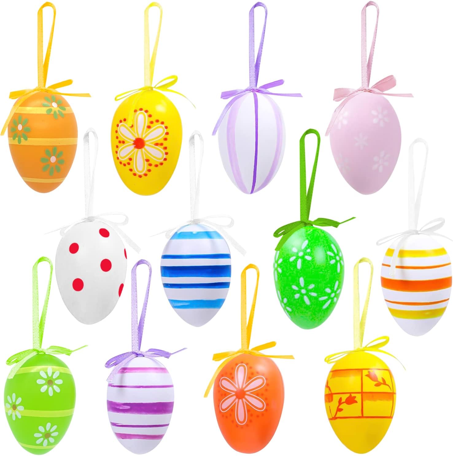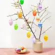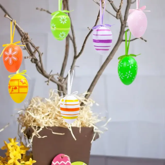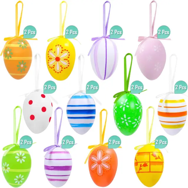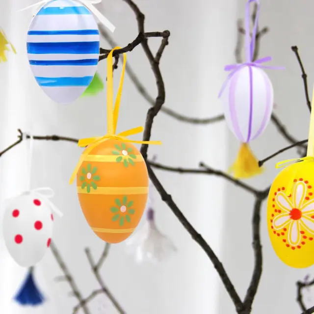 Vnesite veselo praznično vzdušje v svoj dom s kompletom štiriindvajsetih barvitih velikonočnih jajc znamke Aviski. Vsako jajce v tem kompletu je ročno poslikano v enem izmed dvanajstih edinstvenih vzorcev, ki vključujejo različne motive od pik do cvetličnih elementov, kar ustvarja živahno dekoracijo. Izdelki so narejeni iz visokokakovostne plastike, kar zagotavlja, da so lahki, trpežni in primerni za uporabo skozi več sezon. Zaradi svoje praktične zasnove so ti okraski primerni za krasitev notranjih prostorov, zunanjih površin, prazničnih miz ali kot del kreativnih projektov z otroki.