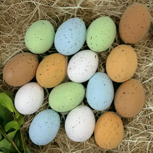 Komplet dekorativnih velikonočnih jajc MIJOMA predstavlja odlično rešitev za vse, ki želijo v svoje bivalne ali poslovne prostore vnesti pridih pomladi in prazničnega vzdušja. Ta komplet vsebuje 15 skrbno izdelanih barvitih jajc, ki so namenjena obešanju na veje, praznične vence, okna ali druge dekorativne aranžmaje. Izdelana so iz lahkega in trpežnega materiala, kar zagotavlja njihovo dolgo življenjsko dobo in možnost uporabe skozi več sezon. Zaradi svoje praktičnosti in estetske dovršenosti so primerna tako za domačo uporabo kot tudi za okrasitev trgovin, pisarn ali restavracij.