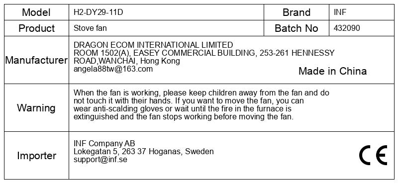Ko ventilator deluje, držite otroke stran od ventilatorja in se ga ne dotikajte z rokami. Če želite premakniti ventilator, lahko nosite rokavice proti opeklinam ali počakate, da ogenj v peči ugasne in ventilator preneha delovati, preden ga premaknete.
