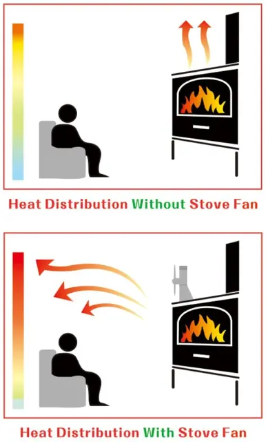 Tiho delovanje: Ventilator ne povzroča hrupa, toplota pa se oddaja tiho in brez porabe električne energije. Dobite boljši učinek toplote iz vašega kamina in toplote v celotnem prostoru, hkrati pa prihranite pri stroških ogrevanja.