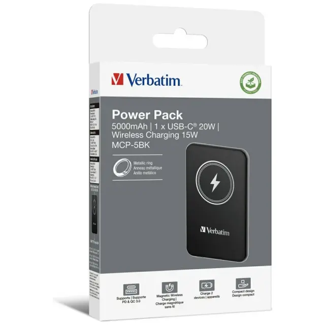 VERBATIM POWERBANK INDUKCYJNY `N` GO 15W5000MAH WIRELESS MAGNETIC CZARNY/BLACK 32240