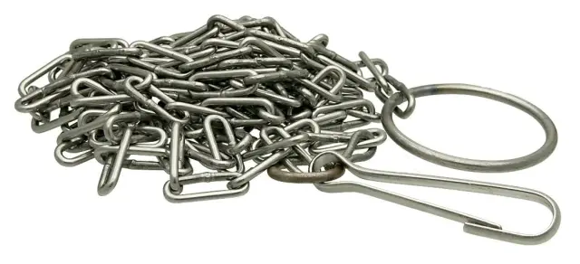 Verižica z dolgimi členi, dolga 5 m, ki se zaključi z obročkom na eni strani in karabinom z zasukom na drugi strani. Debelina verižice 5 mm.