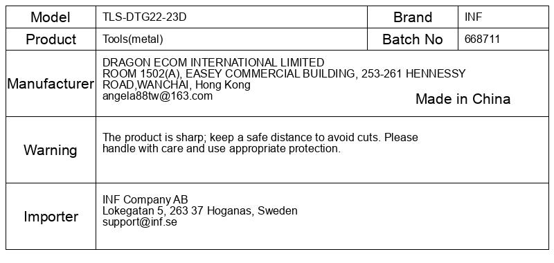Izdelek je oster; ohranjajte varno razdaljo, da preprečite ureznine. Prosimo, da z njim ravnate previdno in uporabite ustrezno zaščito.