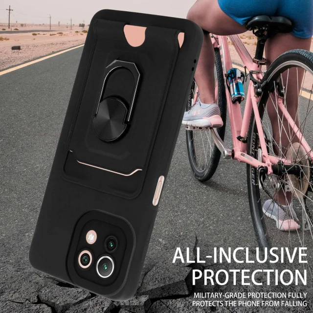 Verižica za mobilni telefon s funkcijo stojala, združljiva z Xiaomi Mi 11 LITE (4G/5G)/11 LITE NE v črna barvi - silikonski zaščitni pokrov z nastavlj