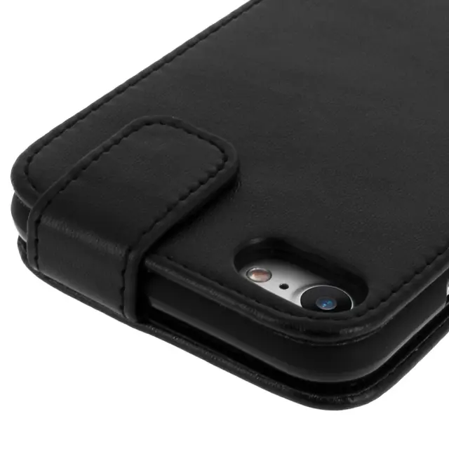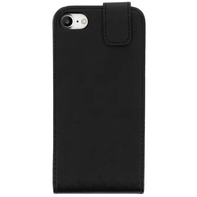 Zaščitna torbica črna Apple iPhone 7/8/SE 2020. Vgrajena zaščita z magnetnim jezičkom. Nezlomljiva notranja zaščitna prevleka iz silikonskega gela. Tanek, eleganten dizajn s čvrstimi šivi.