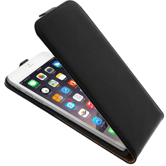 Vertikalna preklopna torbica iz sintetičnega usnja za Apple iPhone 6 Plus – črna