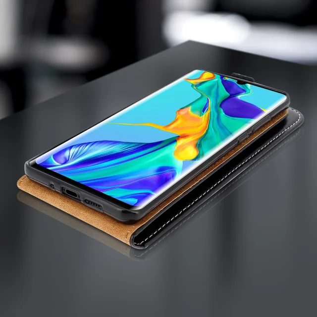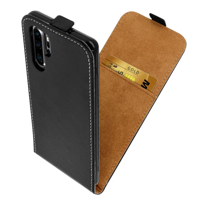 Vertikalna preklopna torbica Držalo za kartice, gladek ucinek - crna str. Huawei P30 Pro