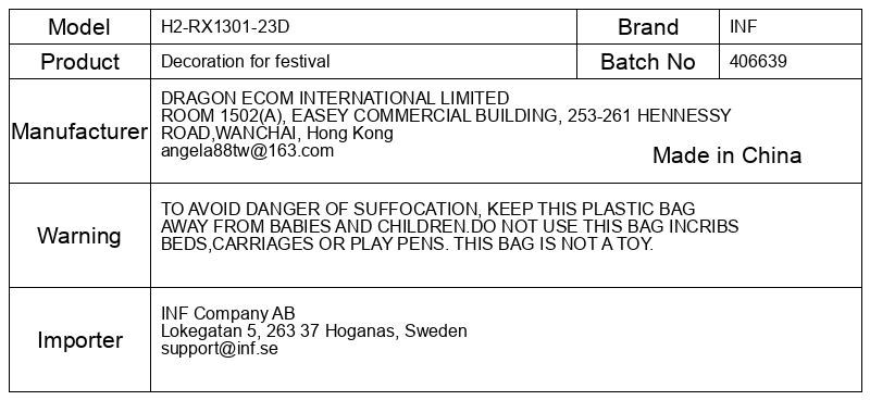 DA BI SE IZOGNILI NEVARNOSTI ZADUŠITVE, HRANITE TO PLASTIČNO VREČKO PROČLENO DO DOJENČKOV IN OTROK. NE UPORABLJAJTE TE VREČKE V POSTELJAH, VOZIČKIH ALI IGRAH. TA TORBA NI IGRAČA.