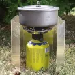 Visokokakovosten izdelekčeškega vodilnegav proizvodnji turistične opreme in pripomočkov, podjetjaMEVA, ki obstaja že od leta 1898. Vetrna zaščita je idealen dodatek k plinskim pečem, ki se uporabljajo na terenu. Gorilnik ščiti pred vetrom, tako da v vetrovnem vremenu plamen ne ugasne.