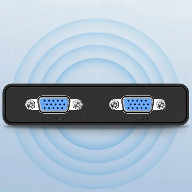 Visokokakovosten razdelilnik VGA UGREEN 40254 VGA omogoča razdelitev signala na 2 monitorja, zaslona ali projektorja. S podporo ločljivosti 1920x1440 vas bo navdušil z odlično kakovostjo. Sistem Plug&Play močno olajša upravljanje naprave, ABS ohišje pa poveča njeno vzdržljivost.