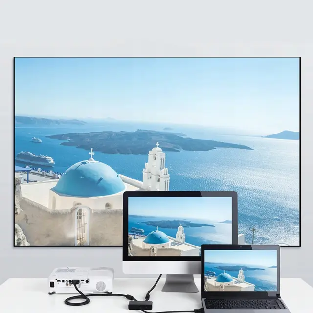 Zaradi široke združljivosti je razdelilnik UGREEN 40254 izjemno vsestranski. Njegov vhodni konektor se med drugim prilega računalnikom, prenosnikom in konzolam. Izhodni konektor pa je mogoče enostavno povezati s projektorjem, monitorjem ali zaslonom.