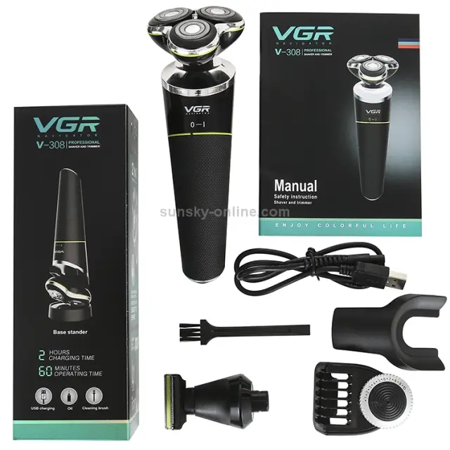 VGR V-308 2 v 1 5W USB električni brivnik z dvojno glavo