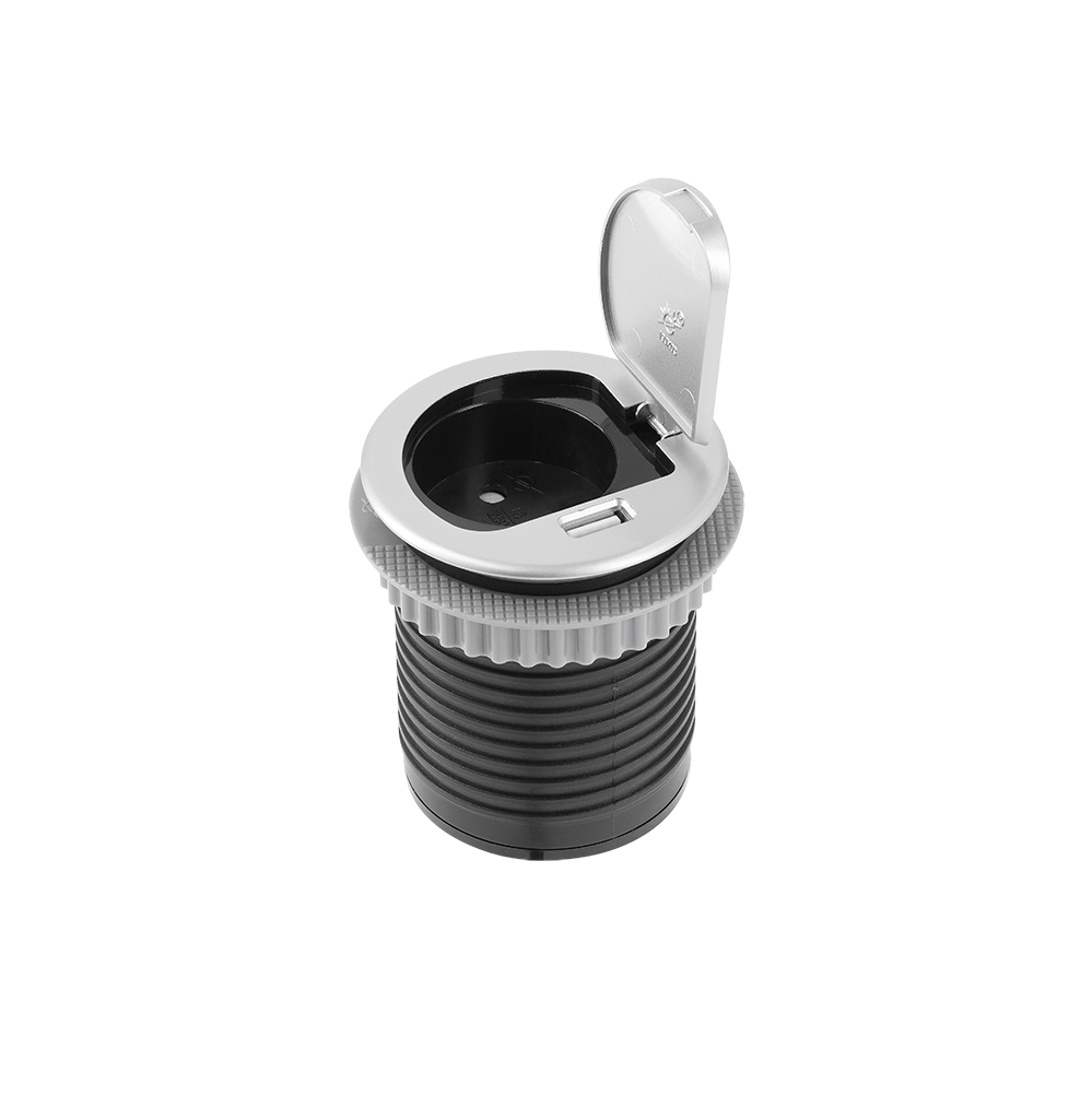 Vgradna vtičnica 1 x ŠUKO in 1 x USB z 1,9 metra kabla v sivi barvi predstavlja praktično rešitev za napajanje električnih naprav in polnjenje naprav z USB priključkom doma ali na delovnem mestu.