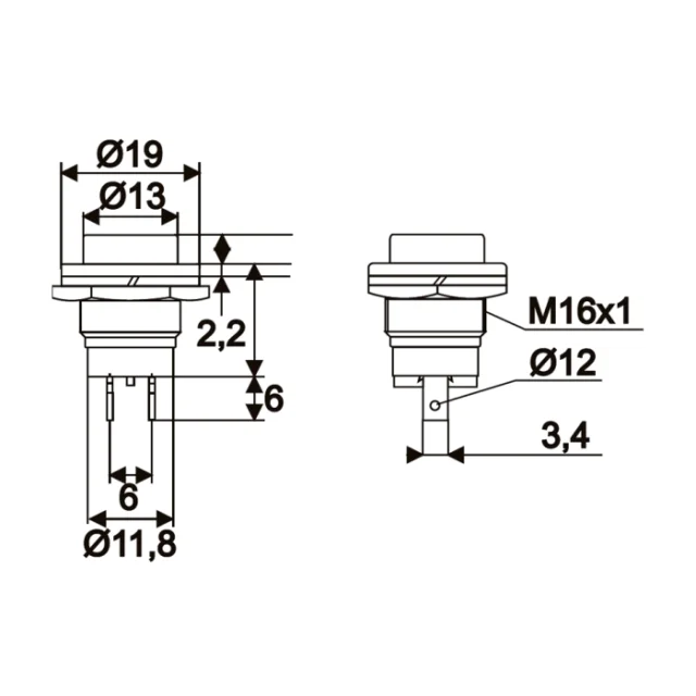 Vgradno stikalo tipkovno modro off-(on) 2A 250V